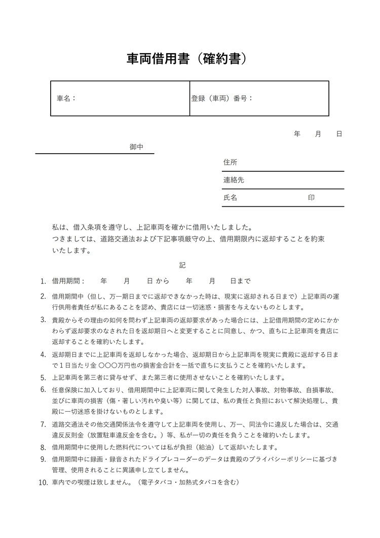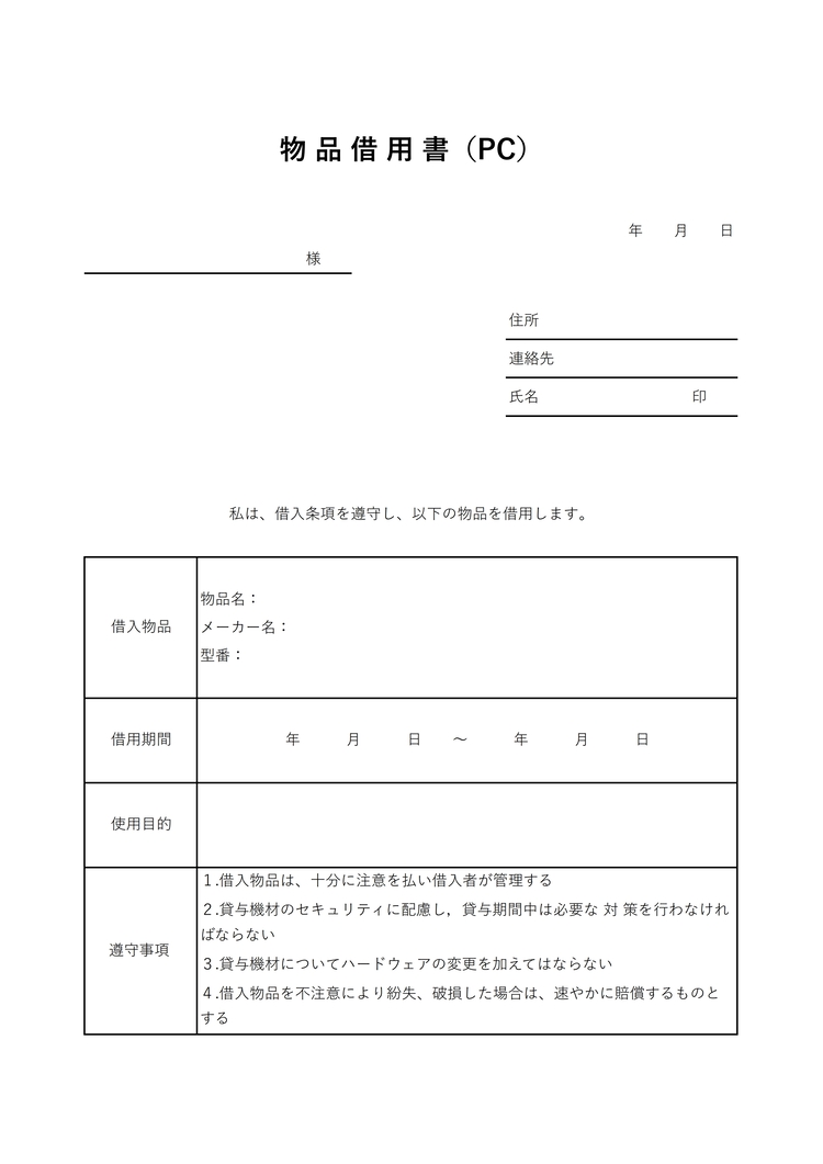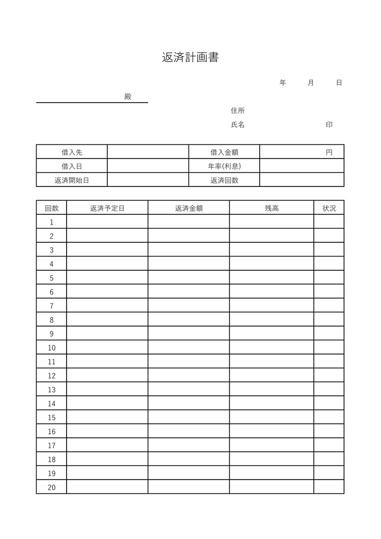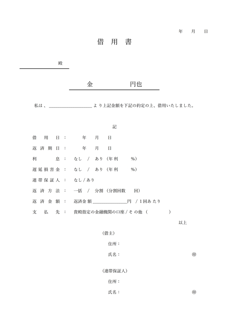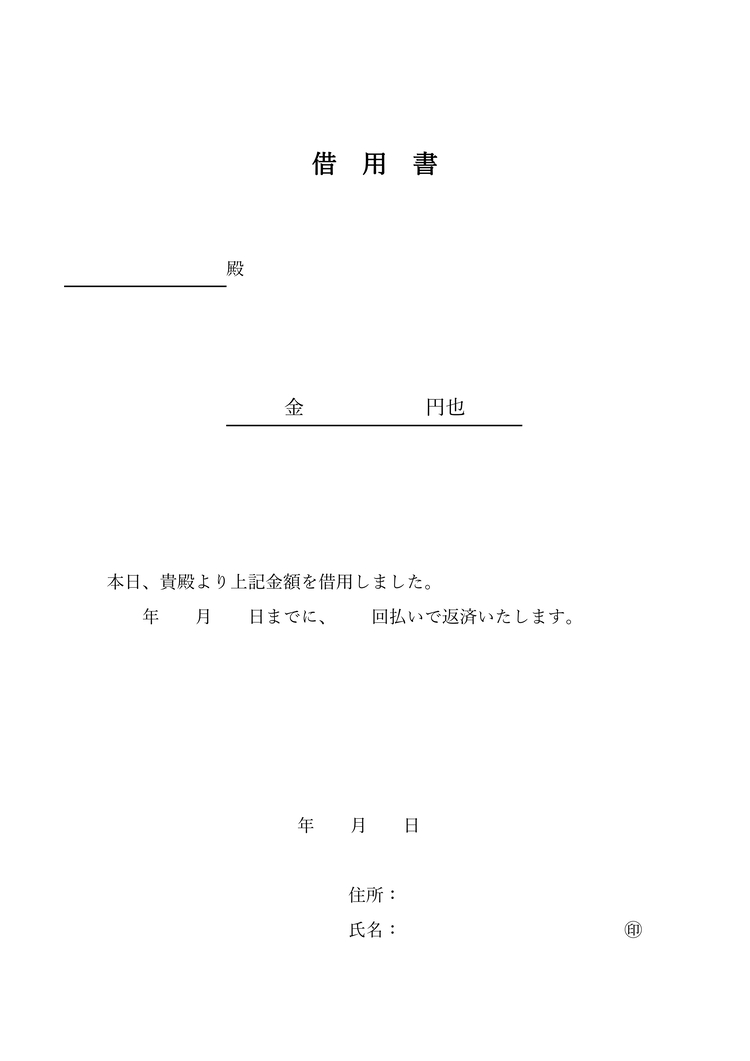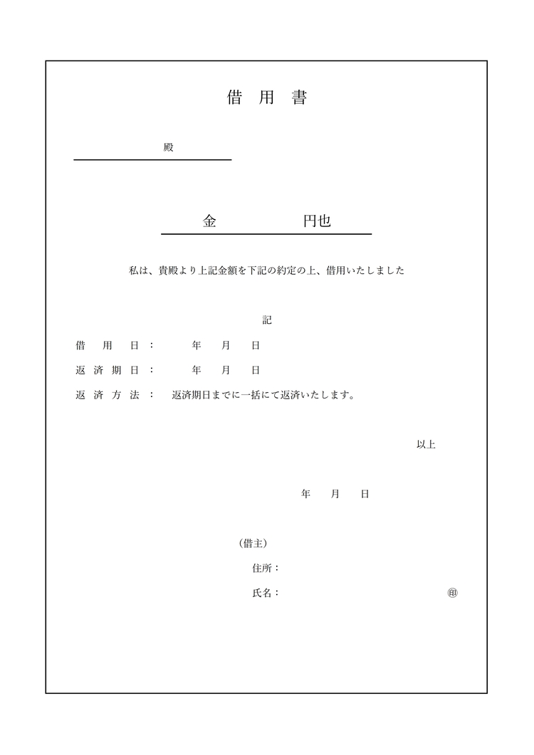その2:借用書テンプレートテンプレートをそのまま印刷する