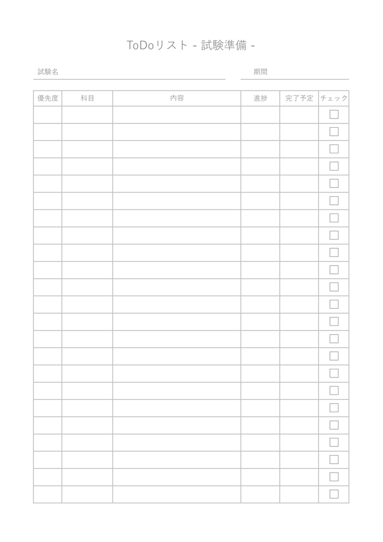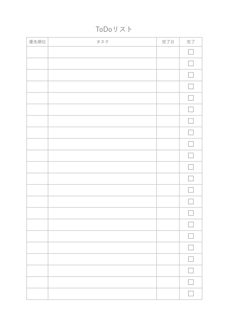 シンプルなToDoリスト-完了日、優先順位欄付き