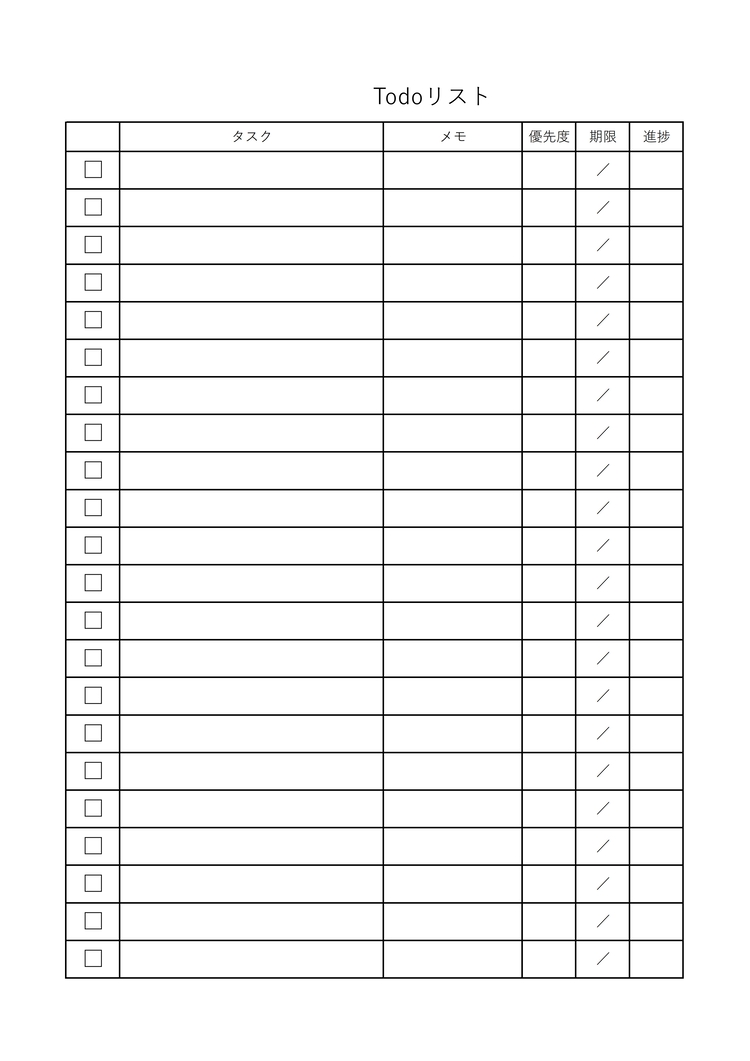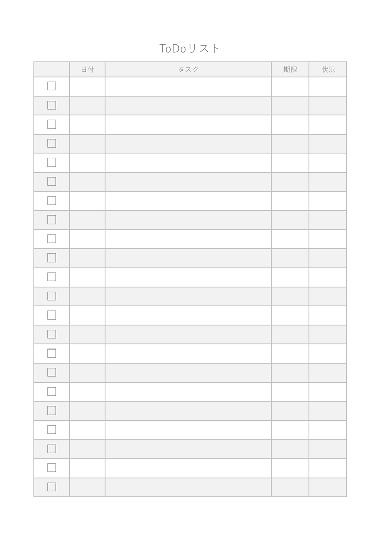シンプルなToDoリスト-日付、期限、状況欄付き